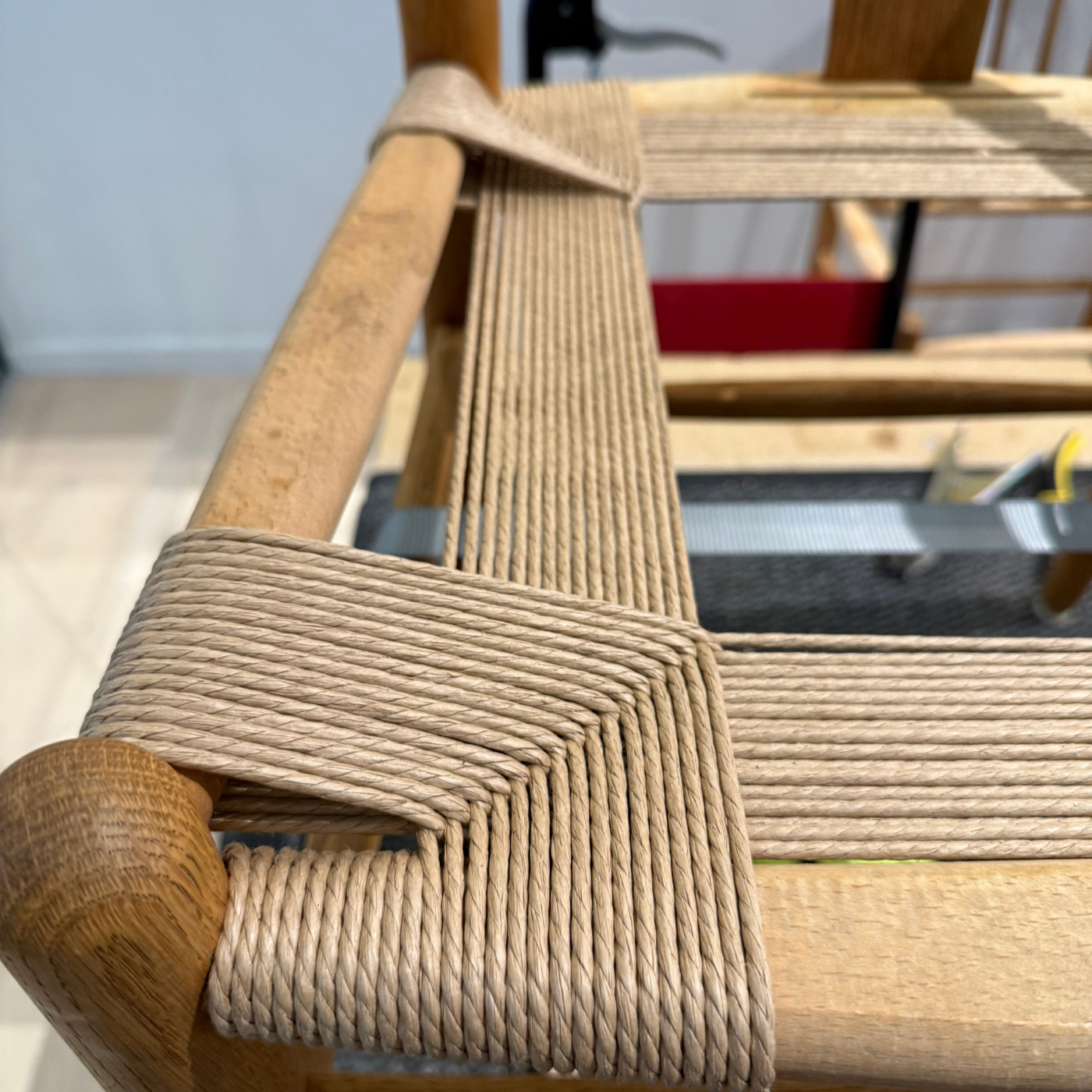 Jeg fik anbefalet DKA design igennem en ven. Jeg skulle have flettet 6 Y stole og 4 J 39. Jeg fik fat i Allan og han virkede kompetent fra begyndelsen. Vi talte om, at jeg også gerne vil have lavet noget træarbejde på stolene.