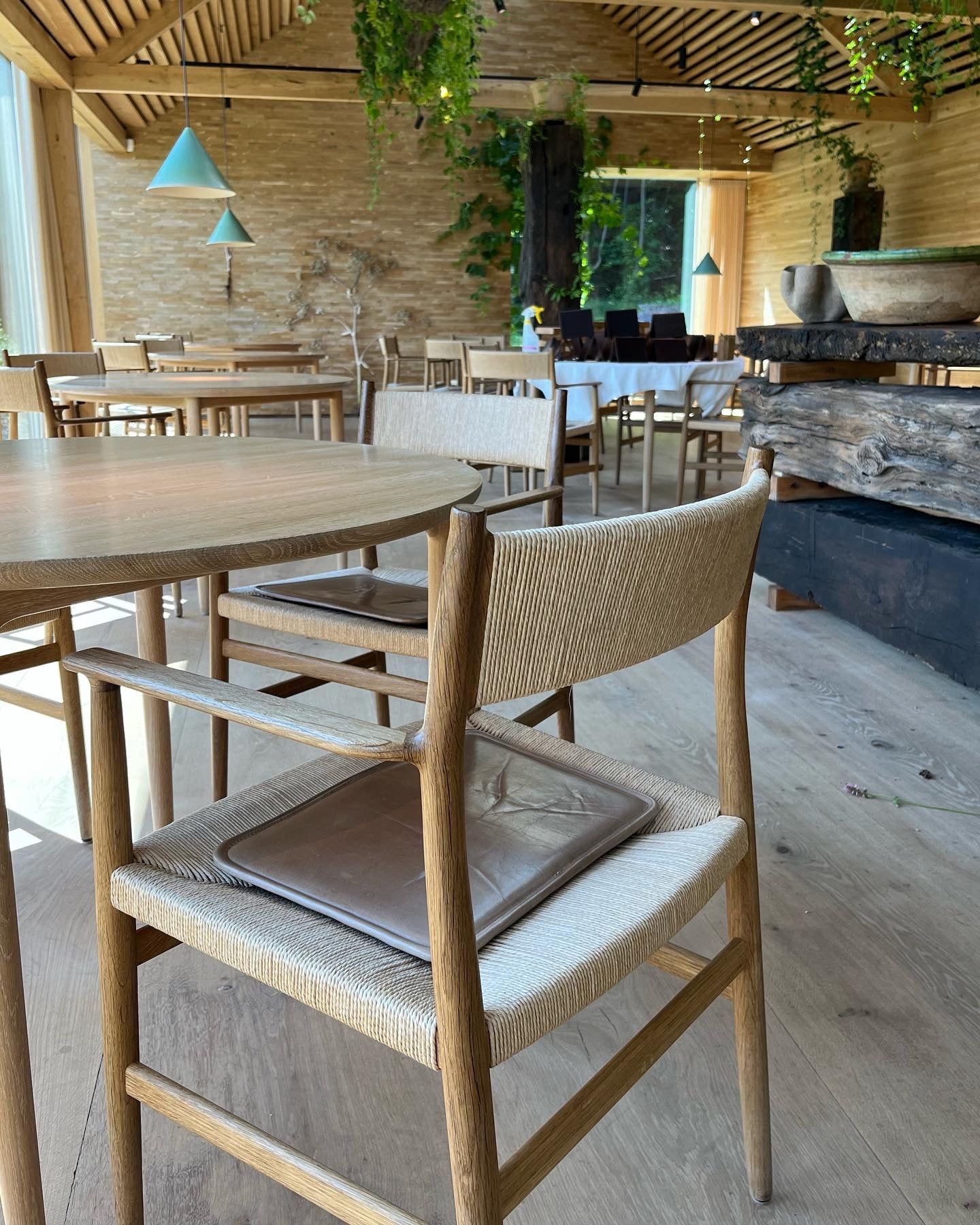 The chair is created by Danish design studio Studio David Thulstrup in collaboration with Brdr. Krüger. The design combines natural materials such as wood and hand-woven wicker to create a timeless and elegant chair. The soft curves and light expression make the ARV chair both comfortable and visually inviting, which fits perfectly with Noma's minimalist and Nordic design concept.